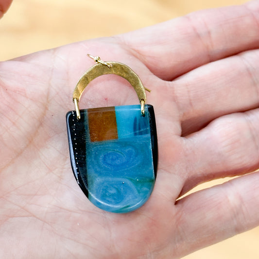 Walkerville wanderings: turquoise blue and ocean green layered bio-resin with beaten brass half moon details