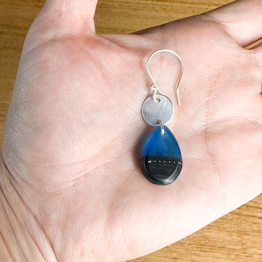 Midnight muse: cobalt and blue black teardrop bio-resin with silver discs
