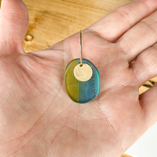 Walkerville wandering: turquoise and sea green layered bio-resin earrings with stirling silver beaten discs