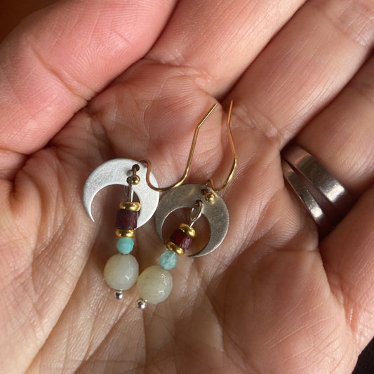 Cascade Earrings, featuring copper, brass and steel.