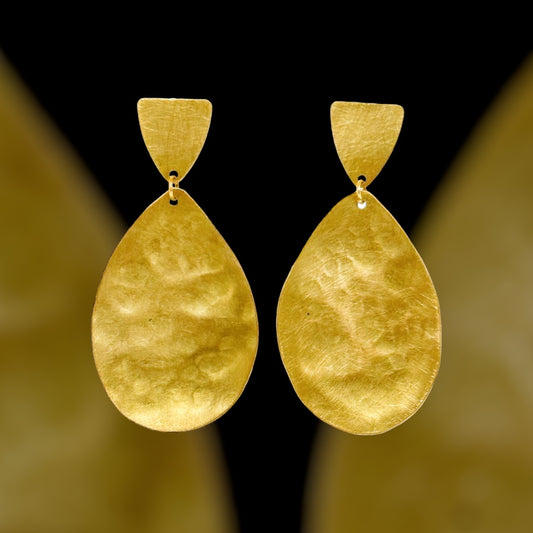 Wanderers: beaten brass tear drop dangles with contemporary triangle stud fixtures