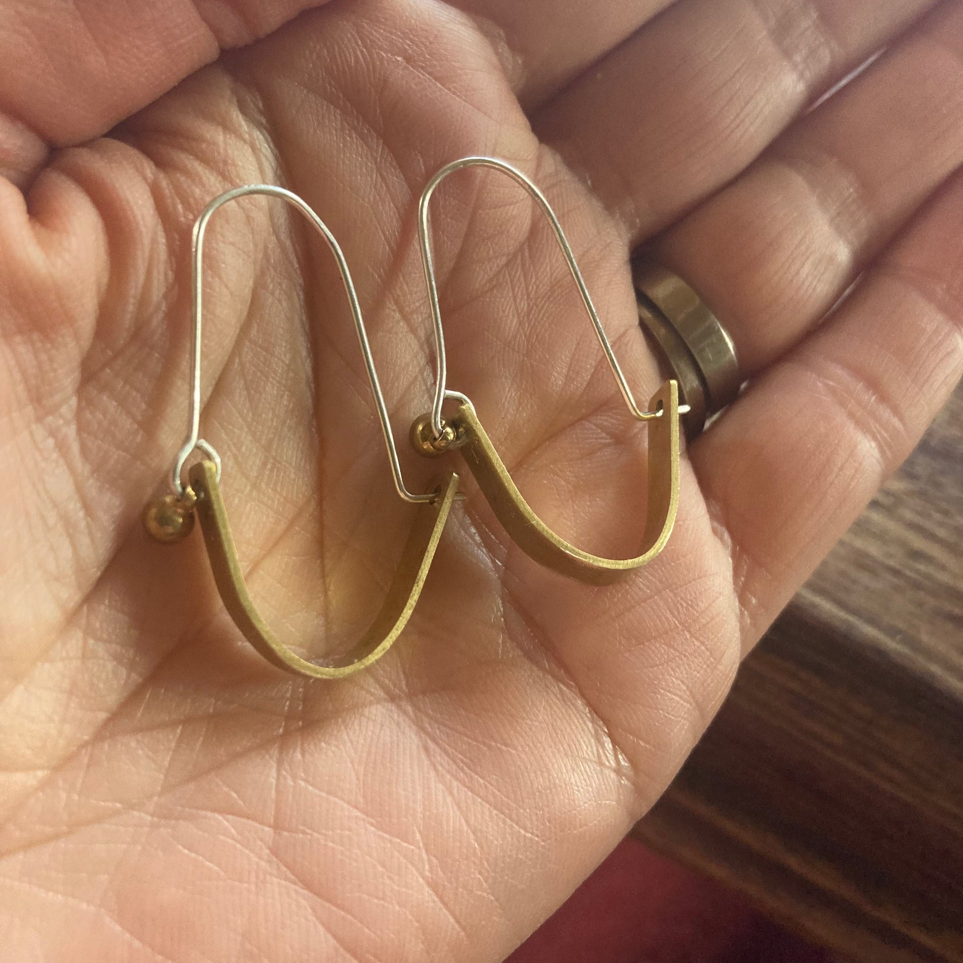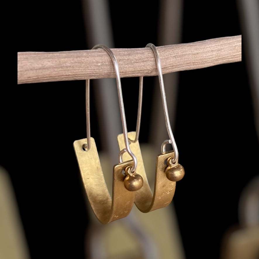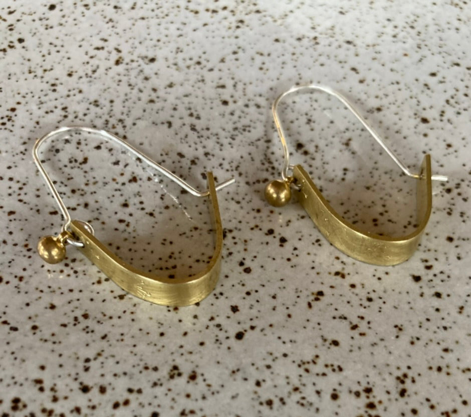 Brass and sterling hoop earrings, sterling silver hooks.